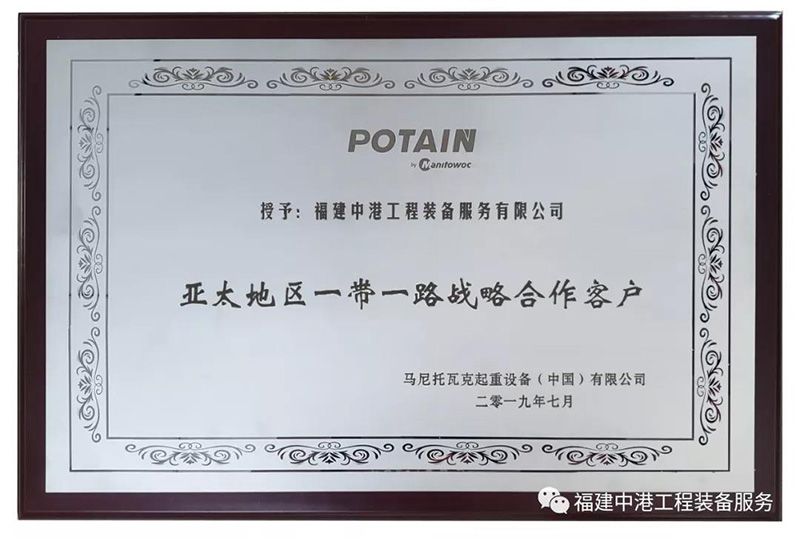 作為一家綜合性專業化工程裝備服務公司,中港公司立足“高起點建設、高質量管理、高效能運作、高標準服務”的高地平臺,始終如一堅持規范運作、科學管理,憑借全方位的技術支持、強大的設備實力和安全可靠的安裝維修能力,贏得了顧客的忠誠和美譽。先后榮獲“中聯重科五千萬級戰略合作伙伴”、“中建二局第一建筑工程有限公司AAA誠信供方”、“第十三屆全國建筑機械租賃企業設備管理優秀單位”、“中建二局第一建筑工程有限公司2015年度優秀分供方”、“中建海峽建設發展有限公司2016年優秀合作企業”、“中建三局集團有限公司(粵)2017年度良好合作單位”、“2018年全國建筑施工機械租賃50強企業”、“廣東省建筑機械租賃、安裝企業信用評價B級”、“2020年中國塔機租賃50強”等。